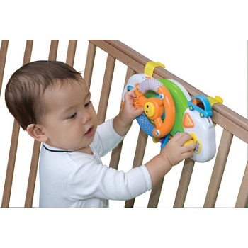 צעצוע עגלה צבעוני ומשעשע בדמות הגה של מכונית כולל אורות מהבהבים של לוח שעונים. שפע של אפשקטים קוליים וצלילים ישעשעו את תינוקכם לאורך זמן מגיע עם רצועות המאפשרות חיבור לעריסה / מיטה / טיולון פועל על סוללות (כלולות באריזה) מגיל: 12 חודשים ועד גיל: ומעלה